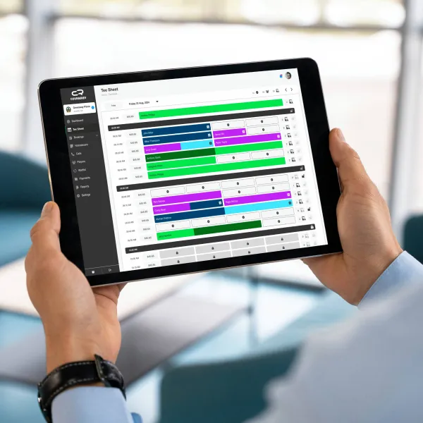 Easily manage reservations, pricing, player types, and history from any device. On-site, the iPad Pro Shop app streamlines scheduling, payments, and customer service, giving your staff full control of the tee sheet and simplifying golf course management.